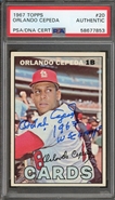 1967 Topps Orlando Cepeda #20 Autographed with Inscriptions PSA/DNA Authentic