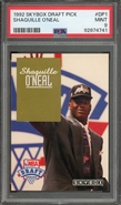 Shaquille O'Neal 1992 Skybox Draft Pick #DP1 in PSA Mint 9 PLUS: 25 Card Shaq Lot