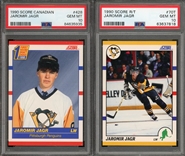 1990 Score Canadian #428 and 1990 Score R&T #70T Jaromir Jagr RC's Both PSA GEM MINT 10