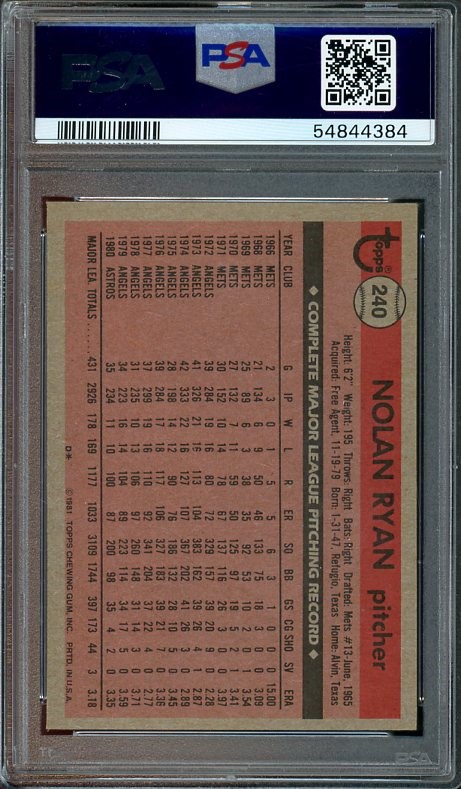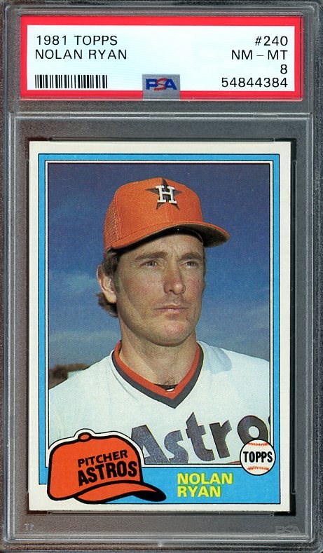 1981 Topps Nolan Ryan #240 PSA NM/MT 8 - A nice looking card of Ryan in his first year with the Astros. Starting bid on this one is just $10.