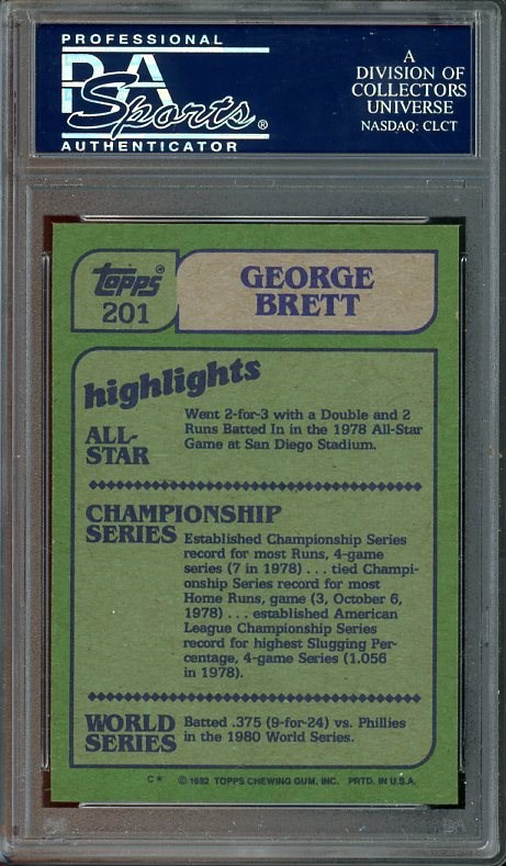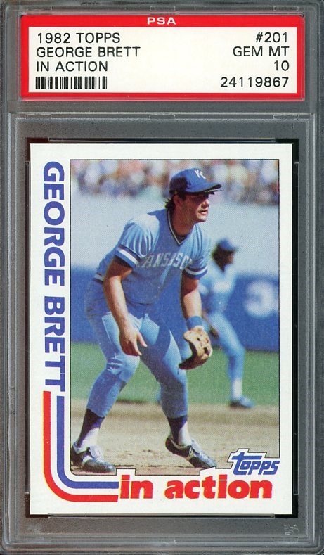 1982 Topps George Brett IA #201  PSA Gem Mint 10 - Card is super sharp and centered.  PSA holder is problem free.  Brett was elected to the Hall of Fame in 1999.