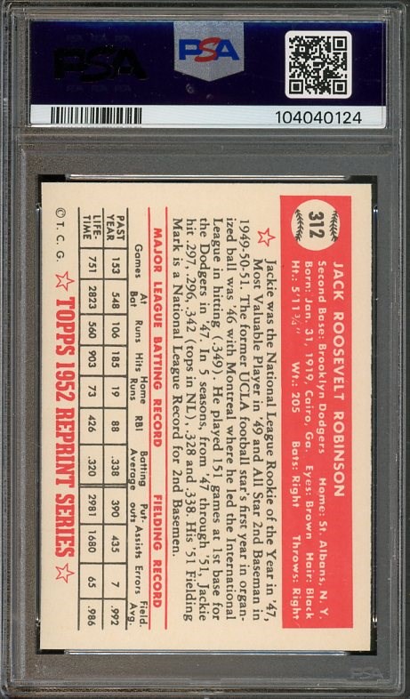 Lot # 295: 1983 Topps 1952 Reprints Jackie Robinson PSA EX/MT 6