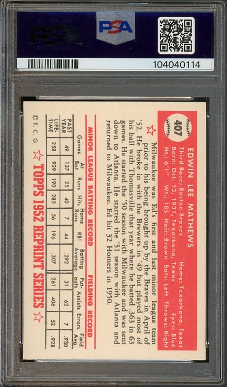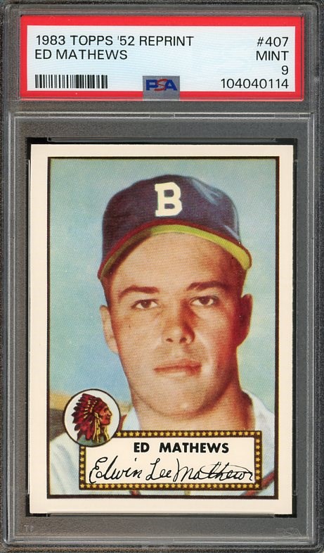 Lot # 296: 1983 Topps 1952 Reprint Ed Mathews #407 PSA Mint 9