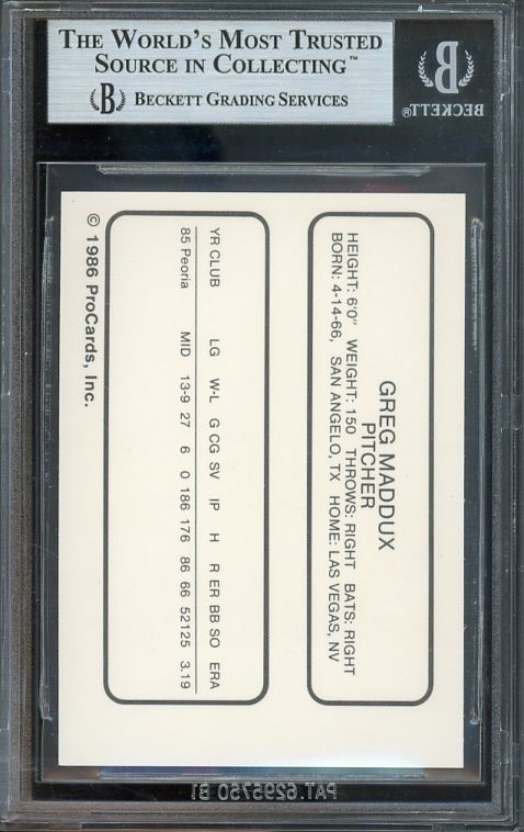 Lot # 319: 1986 Pittsfield Cubs Greg Maddux #14 BGS Mint 9