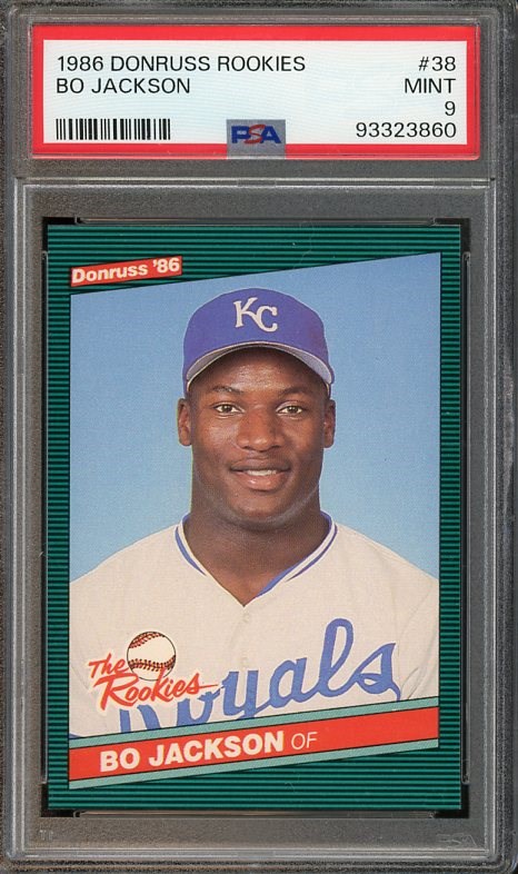 1986 Donruss The Rookies Bo Jackson RC #38  PSA Mint 9 - A resurgence in Bo's cards and autographs began a couple of years ago, helping to revive a lot of mid to late 1980's products.