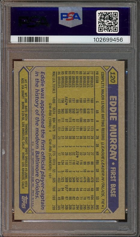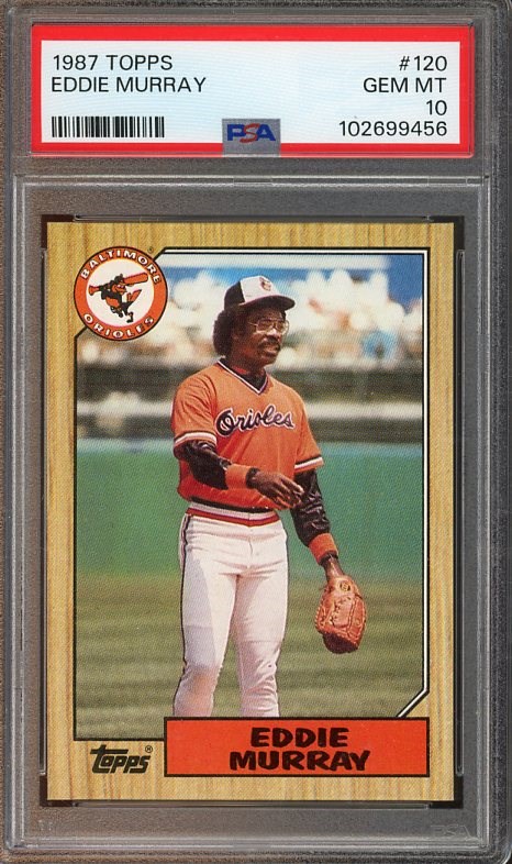 1987 Topps Eddie Murray #120 PSA Gem Mint 10 - A low PSA 10 population on this card adds to it's attractiveness. Card was recently graded and comes in a new PSA holder.