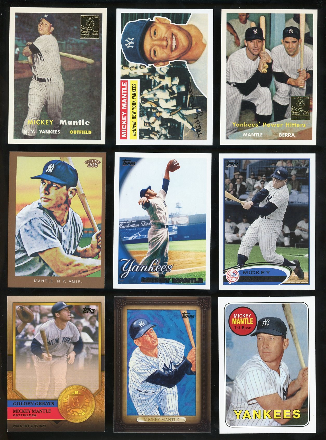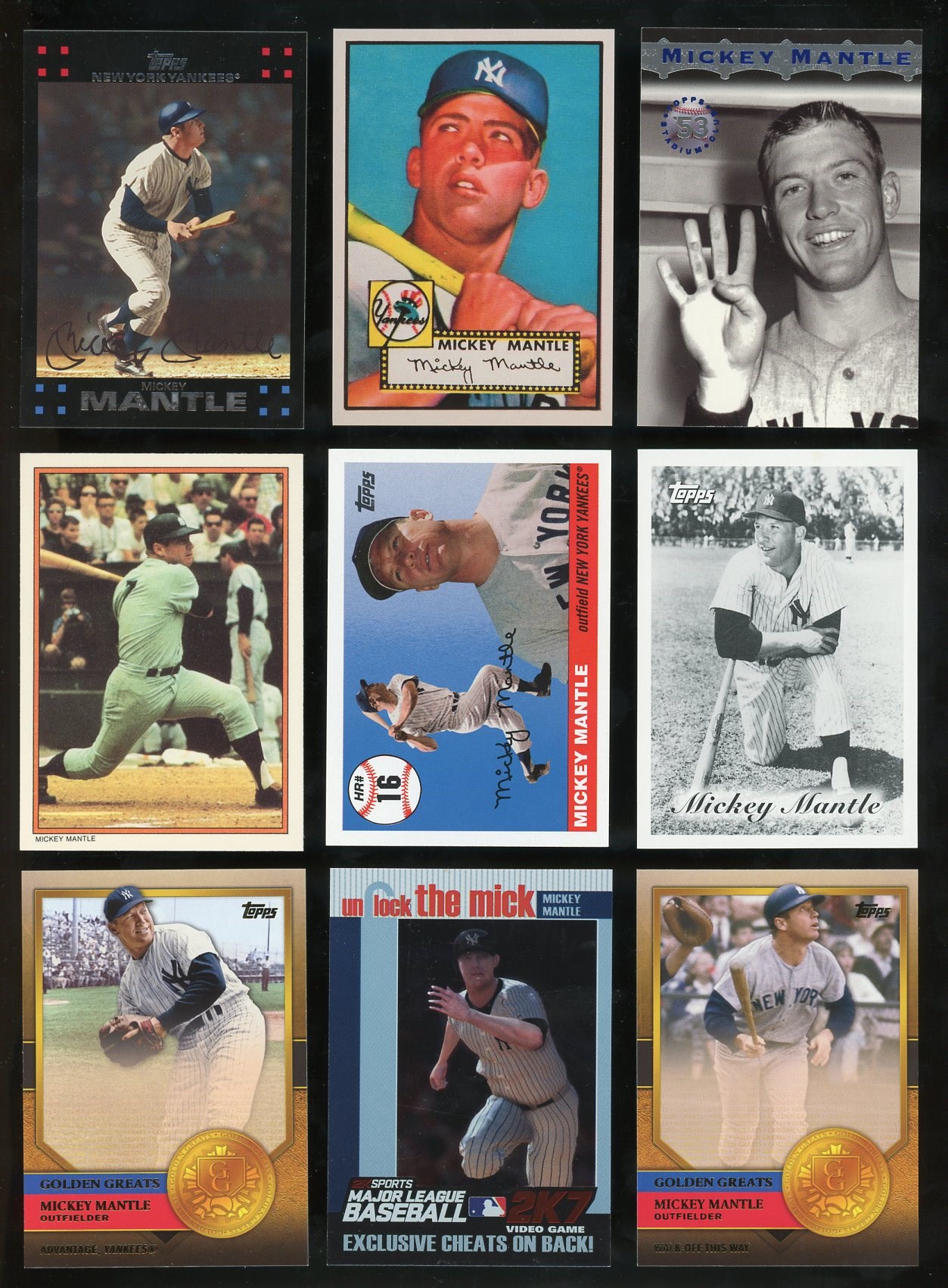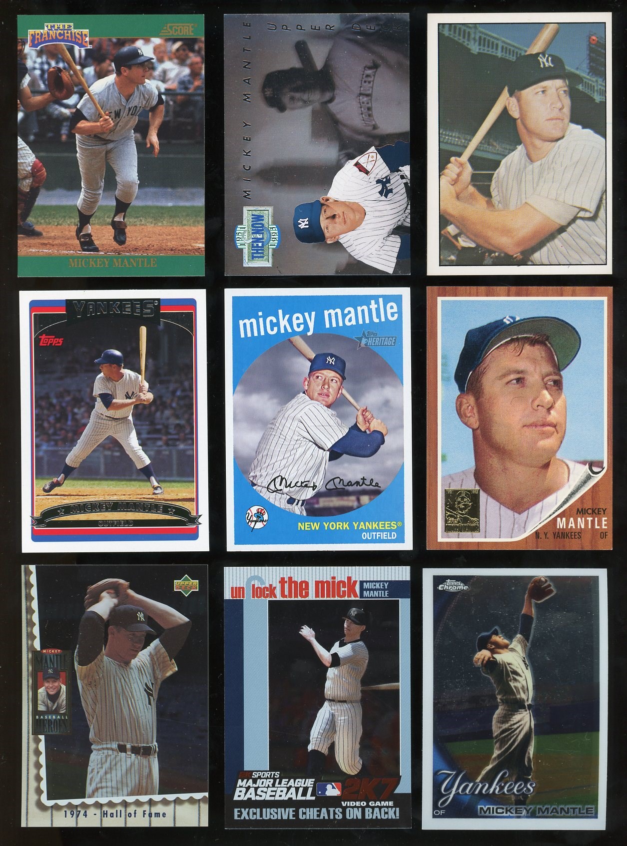Lot of 36 Different Modern (1991-up) Mickey Mantle Cards - A wide variety of Modern Mickey Mantle cards mainly produced by Topps and Upper Deck. Includes inserts, specialty cards and some premium brands. See photos for all cards included.