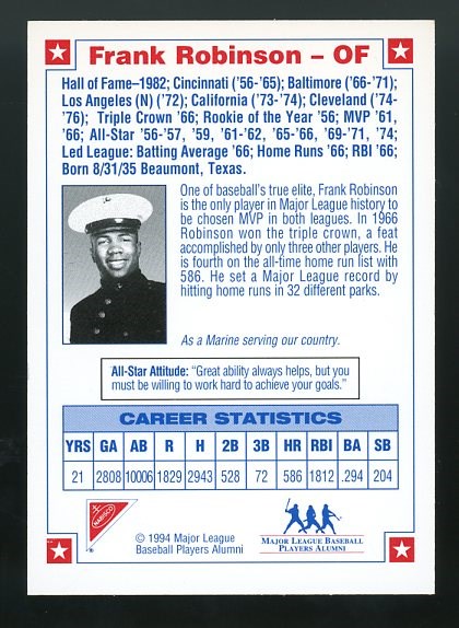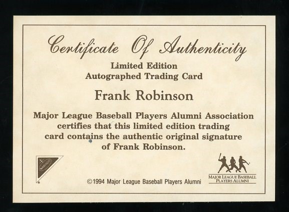 1994 Nabisco All-Star Legends Frank Robinson Autograph - Card comes with the original certificate of authentication from Nabisco.  The autograph and card are both NM/MT or better.