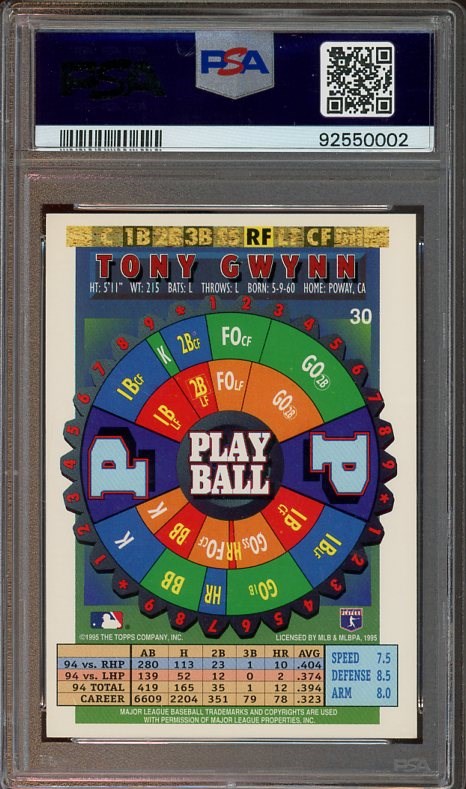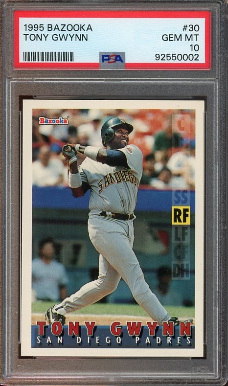 1995 Bazooka Tony Gwynn #30 PSA Gem Mint 10 (Pop 17) - A very tough issue of Tony Gwynn that most collectors are missing. Here is your chance to grab one of only seventeen PSA 10's in existence.