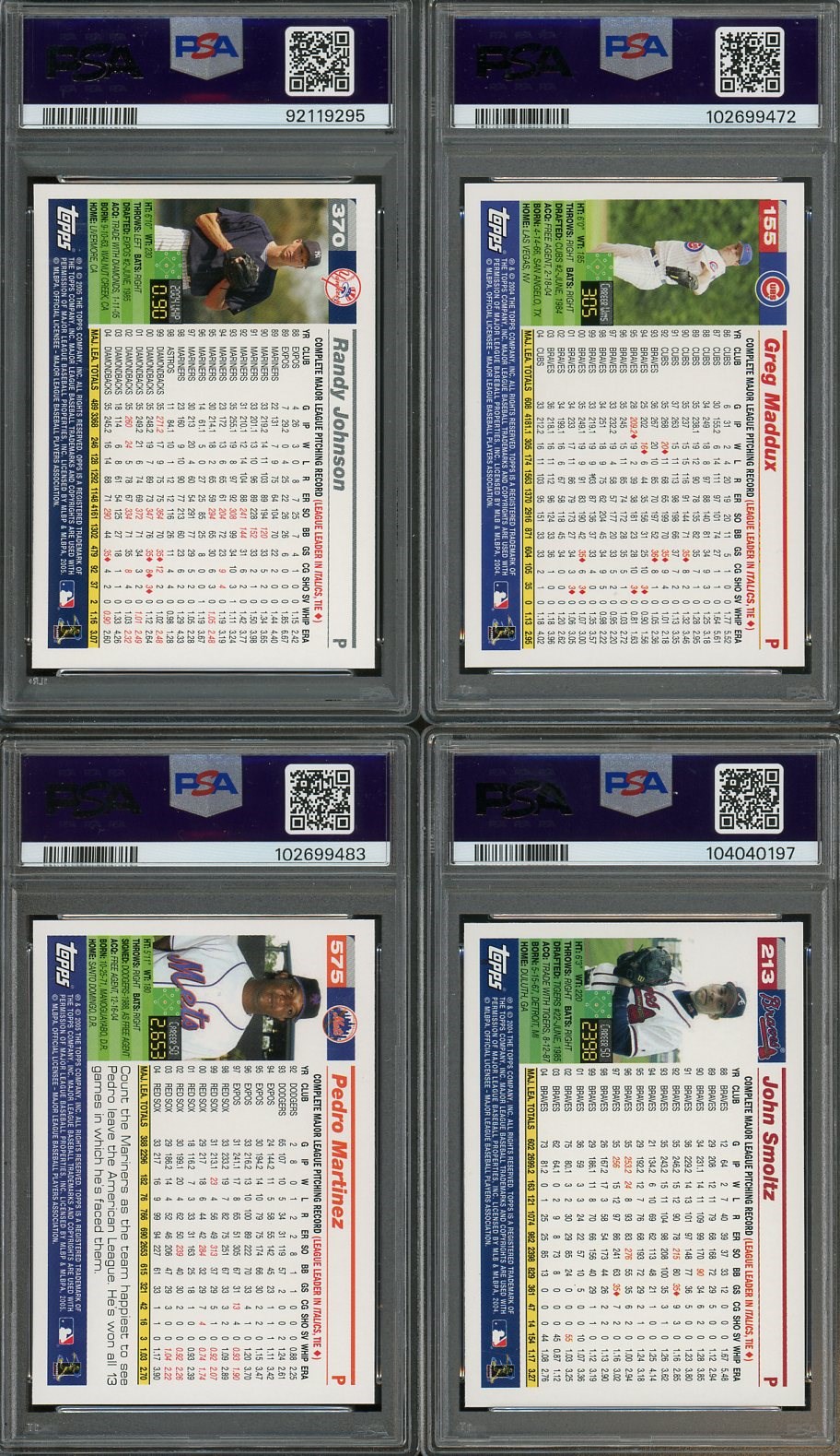 Lot of 4 2005 Topps All in PSA Gem Mint 10's (Pitchers Lot) - Includes Pedro Martinez #575, Greg Maddux #155, Randy Johnson #370, and John Smoltz #213. Starting bid is way below the cost just to grade them!