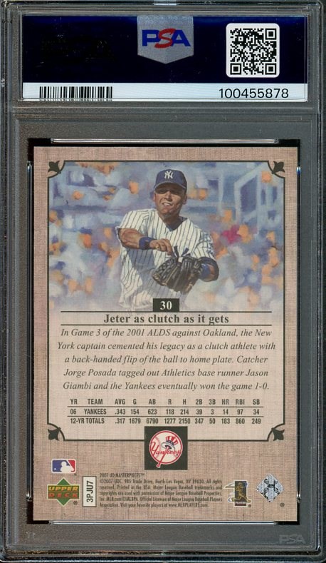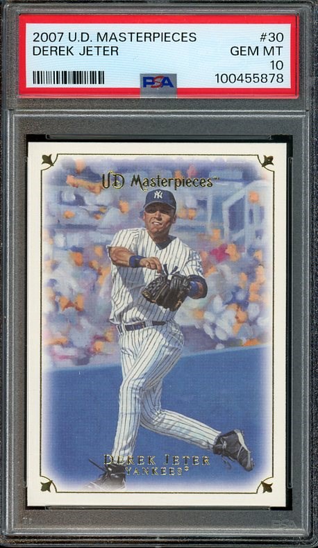 2007 Upper Deck Masterpieces Derek Jeter #30 PSA Gem Mint 10 - A fun, affordable PSA 10 of Hall of Famer Derek Jeter. Card was recently graded and comes in a new PSA holder.