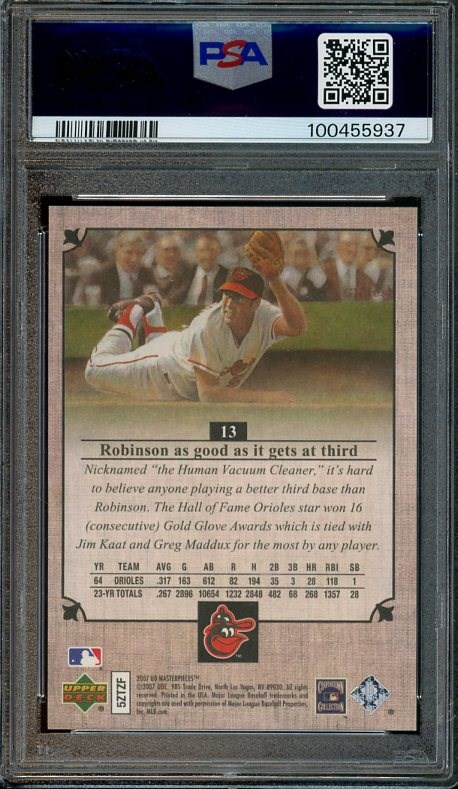 Lot # 462: 2007 Upper Deck Masterpieces Brooks Robinson Green Linen #13 PSA Gem Mint 10 (Pop 1)
