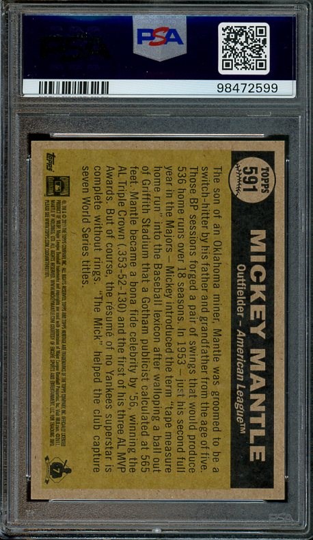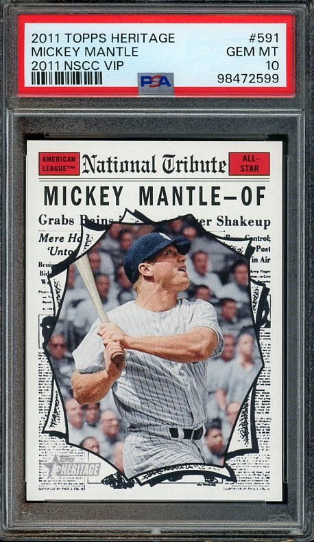 2011 Topps Heritage NSCC VIP Mickey Mantle #591  PSA Gem Mint 10 (Pop 10) - Released as a special offer to the attendees of the National Sports Collector's Convention in 2011.  Only ten exist in PSA 10 grade.