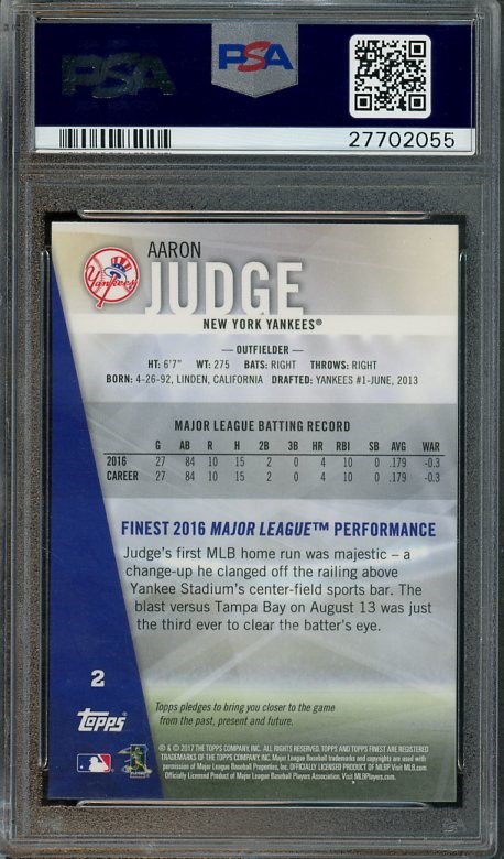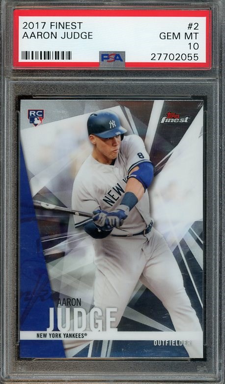 2017 Finest Aaron Judge RC #2  PSA Gem Mint 10 -A strong finish to the 2025 season could earn Judge a shot at the AL Triple Crown.  Here is his Finest rookie in PSA 10 grade.