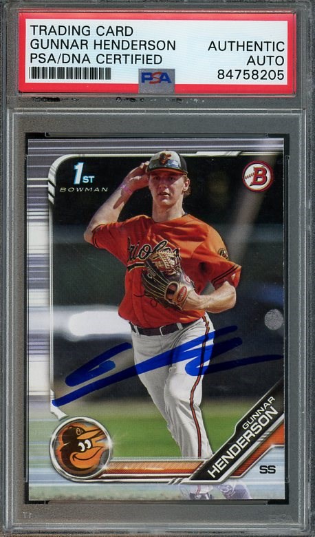 Lot # 536: 2019 Bowman Draft Gunnar Henderson RC #BD22 Autographed PSA/DNA Authentic