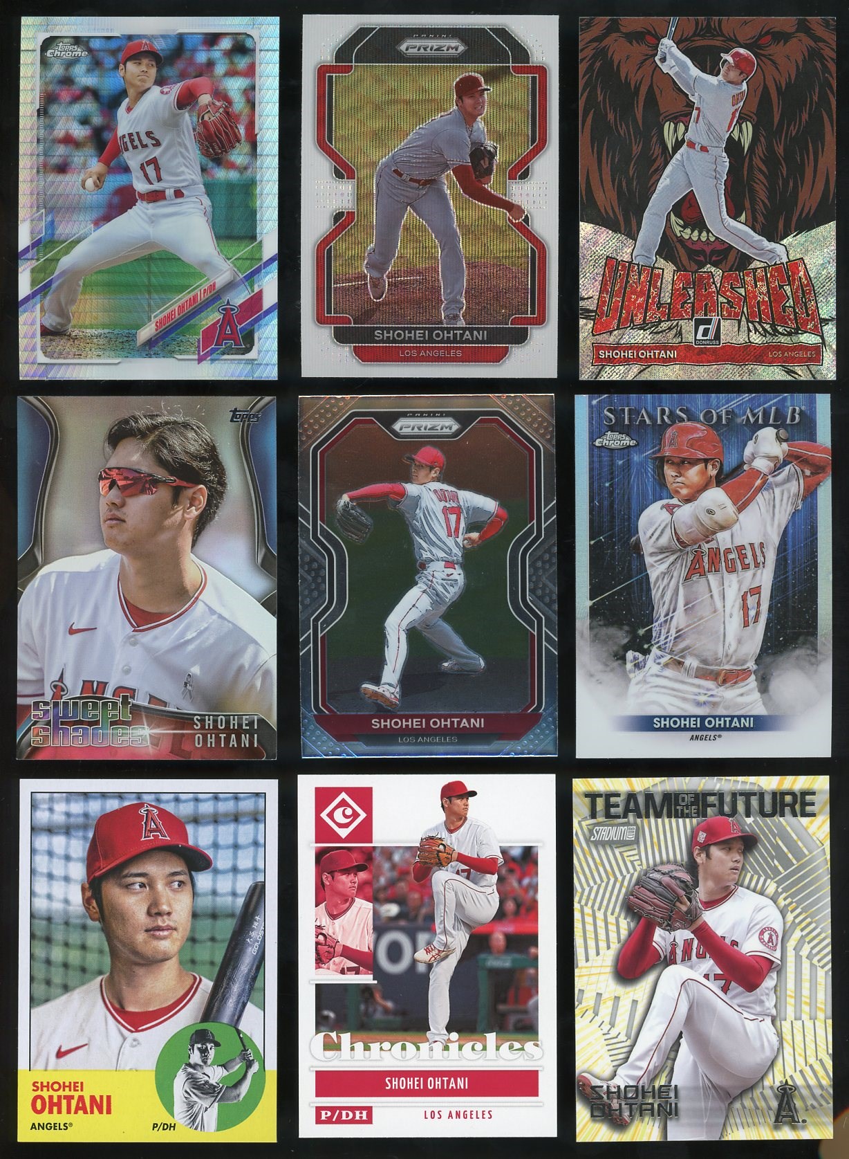 Lot of 14 Different Shohei Ohtani Cards 2021-2023 - A wide variety including some Prizm parallels, Topps Chrome Refractor and a few inserts.  See photos for all cards included in this lot.