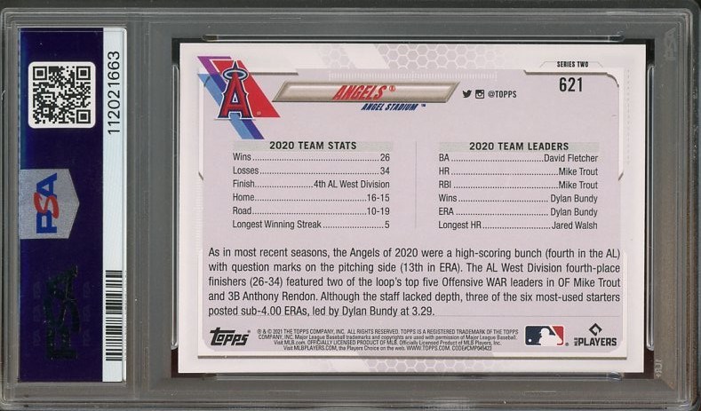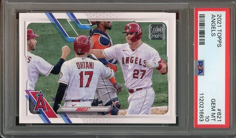 2021 Topps Angels #621 Featuring Ohtani and Trout PSA Gem Mint 10 - A fun card with two of today's biggest stars, starting the bidding at just $10.