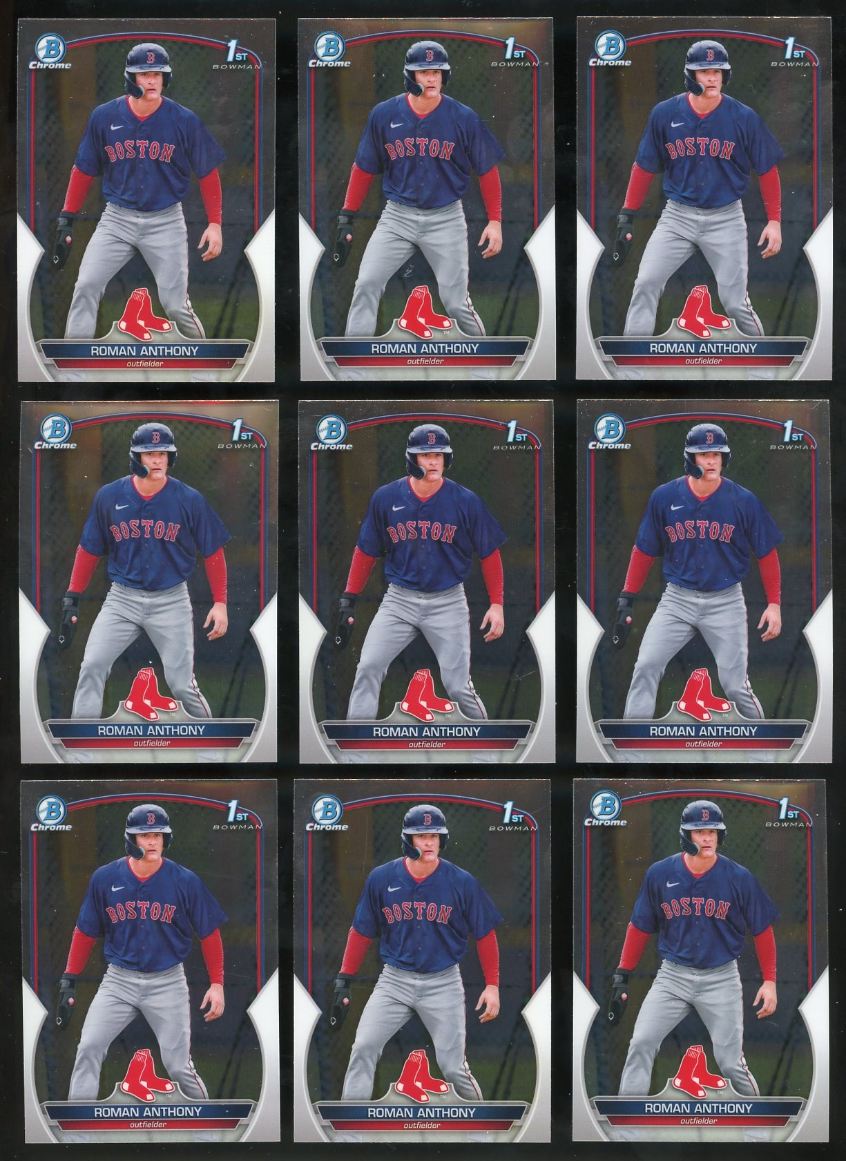 Lot of 10 2023 Bowman Chrome Prospects Roman Anthony RC #BCP71 - Here is a chance to pick up Roman Anthony's first Bowman Chrome rookie in quantity. A ten count lot with all being NM/MT or better.
