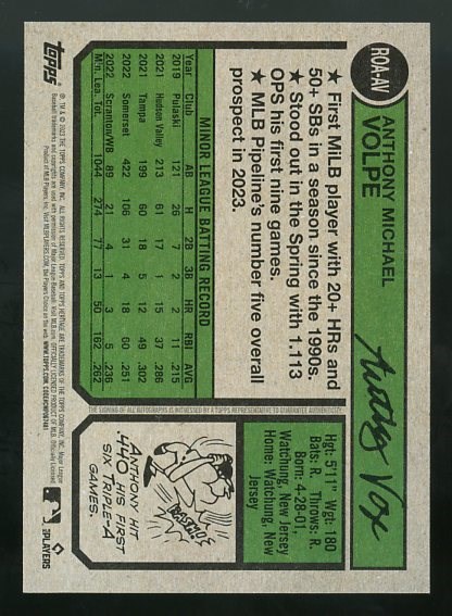 2023 Topps Heritage Anthony Volpe Real Ones Autograph RC #ROA-AV - Here is an on-card rookie signature by Anthony Volpe on Topps' 1974 Heritage design. Card is NM/MT.