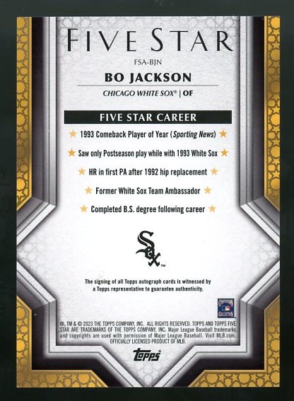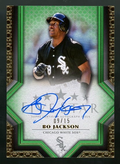 2023 Topps Five Star Bo Jackson Emerald Autograph #'d/15 - Features Jackson's on card autograph, limited to 15 produced.  Bo Jackson autos are hot!  Card is NM/MT.