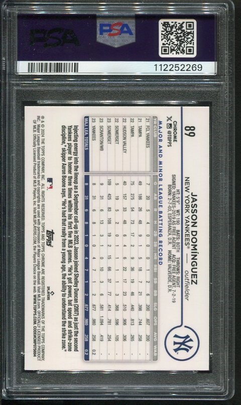 2024 Topps Chrome Jasson Dominguez X-fractor RC #89 PSA Gem Mint 10 - With a starting bid of just $20, this lot presents a chance at a great deal on a hot Dominguez rookie.