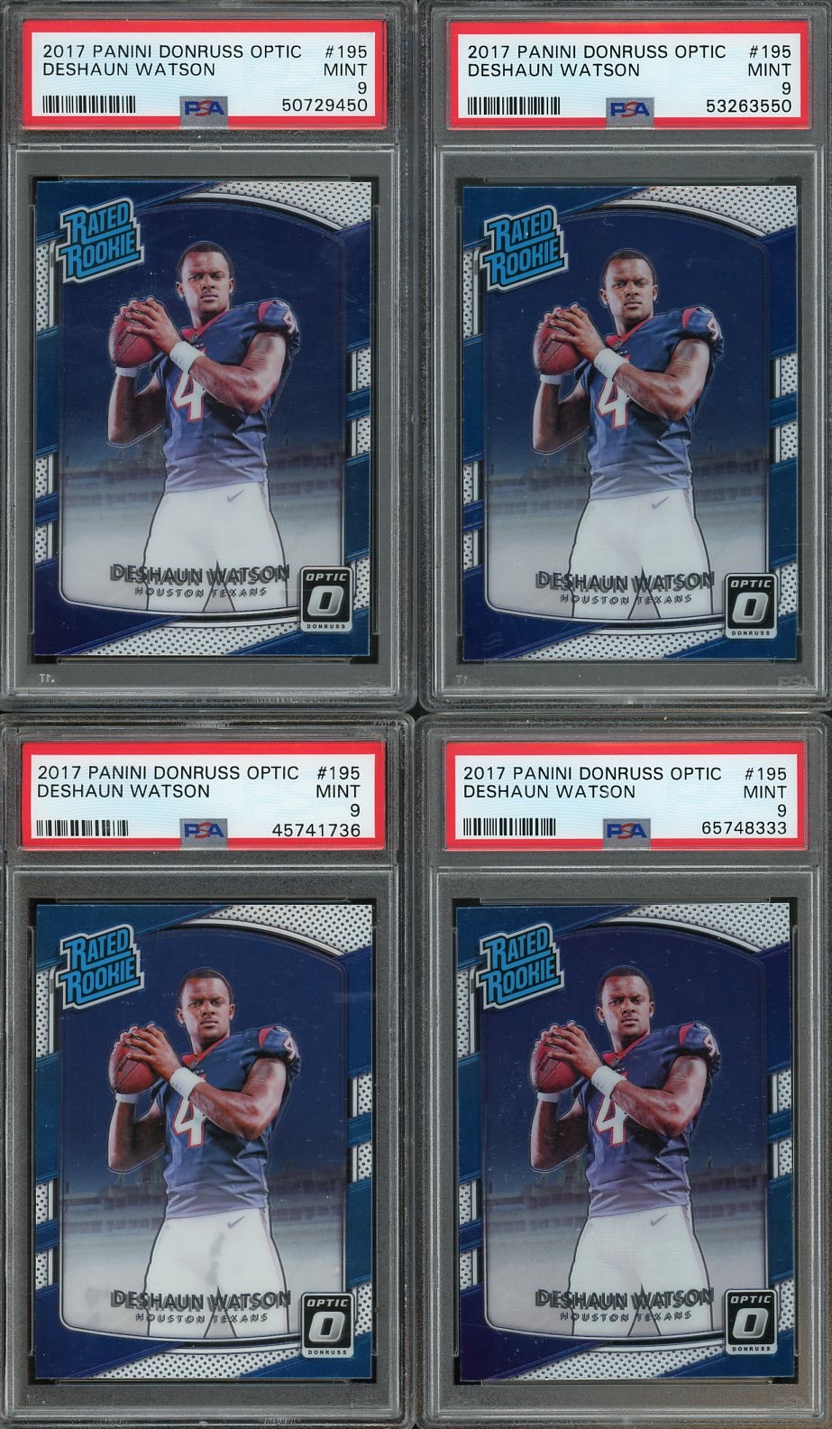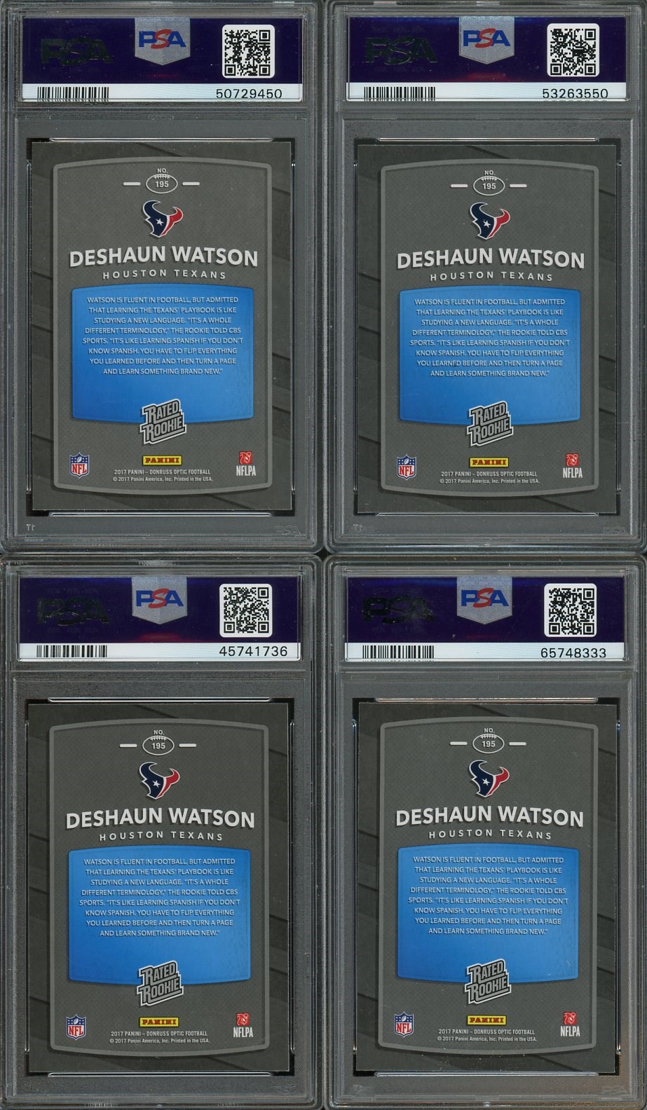 Lot # 686: Lot of 4 2017 Panini Donruss Optic DeShaun Watson RC #195 All are PSA Mint 9's