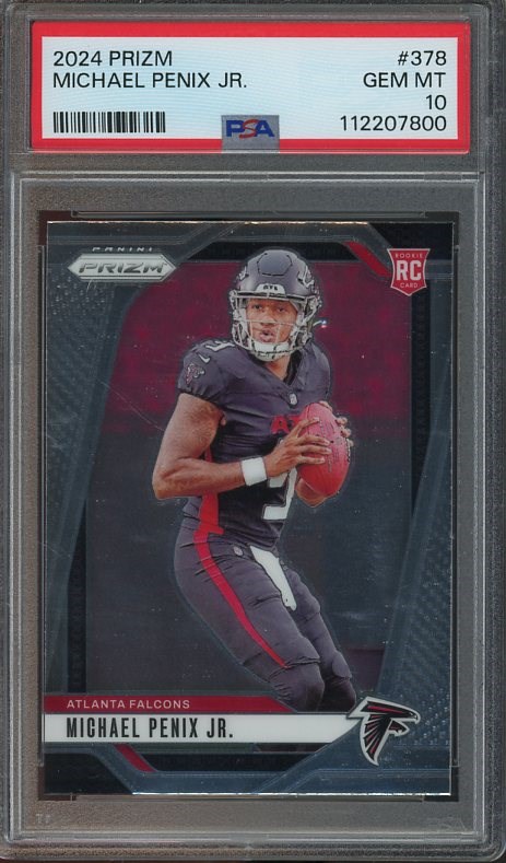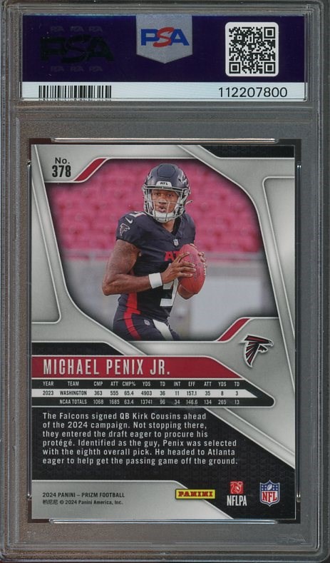 2024 Panini Prizm Michael Penix, Jr. RC #378 PSA Gem Mint 10 - This is one of Penix, Jr.'s best base rookie cards available here in PSA Gem Mint 10 condition.