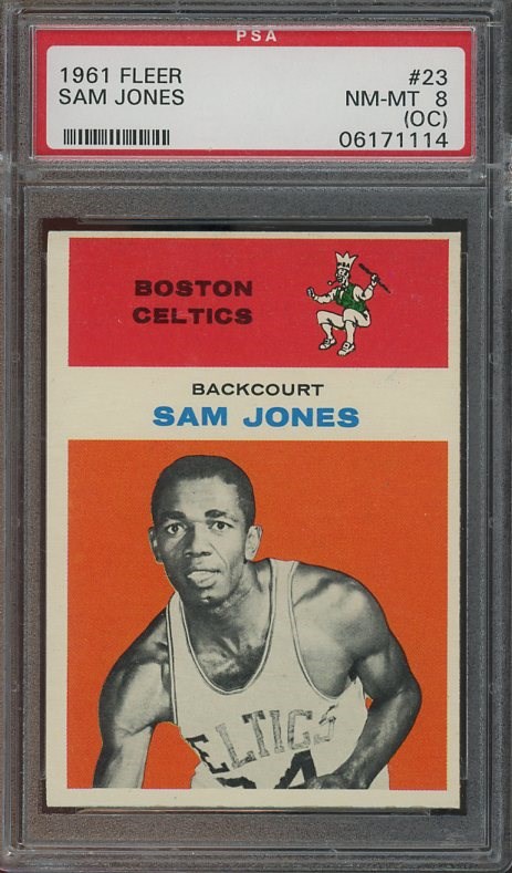 1961 Fleer Sam Jones RC #23  PSA 8OC - Jones is one of the more substantial rookie cards in the 1961 Fleer set.  This is a pack fresh beauty with all of the characteristics of a NM/MT card with the exception of the centering.