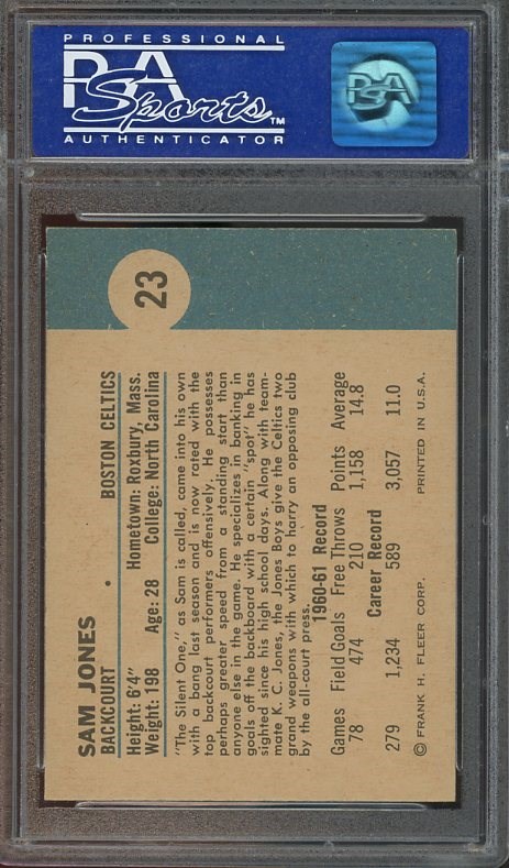 Lot # 731: 1961 Fleer Sam Jones RC #23 PSA 8OC