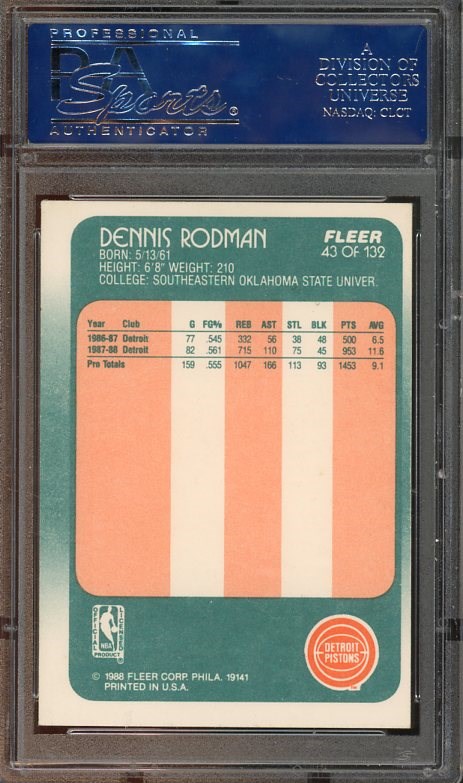 Lot # 748: 1988 Fleer Dennis Rodman RC #43 Autographed PSA/DNA Authentic