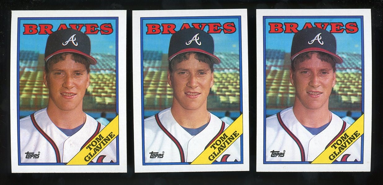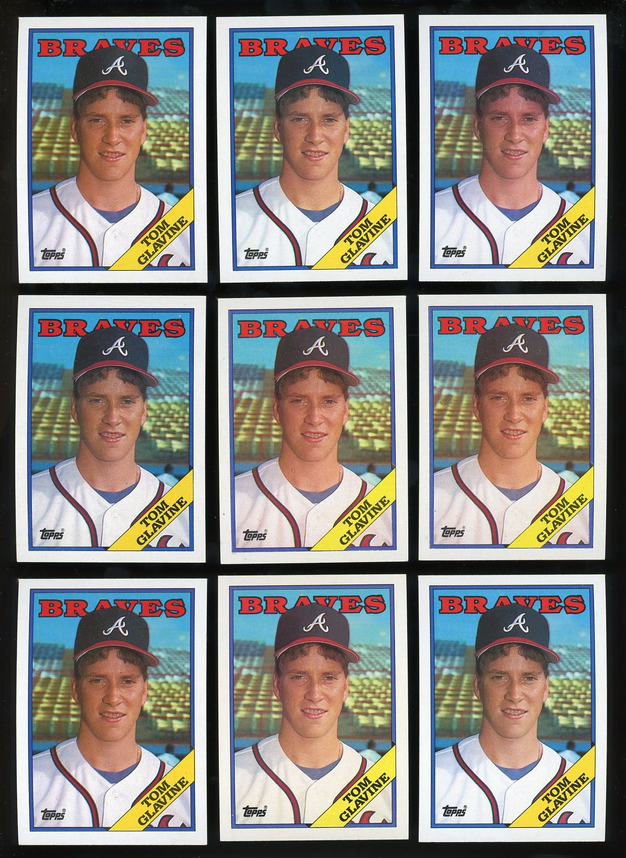 Lot of 30 Tom Glavine 1988 Rookie Cards - Up for auction are 30 rookies of Hall of Famer Tom Glavine. lot includes (4) 1988 Fleer RC #539, (8) 1988 Donruss RC #644, and (18) 1988 Topps RC #779. 90% NM/MT or better, 10% NM