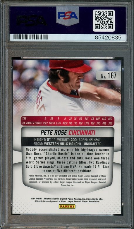 Lot # 499: 2014 Panini Prizm Pete Rose #167 Autographed PSA/DNA Authentic