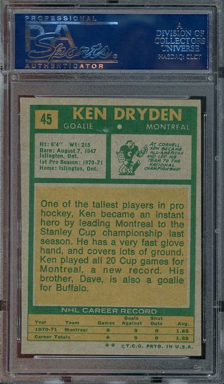 Lot # 842: 1971 Topps Ken Dryden RC #45 PSA EX 5