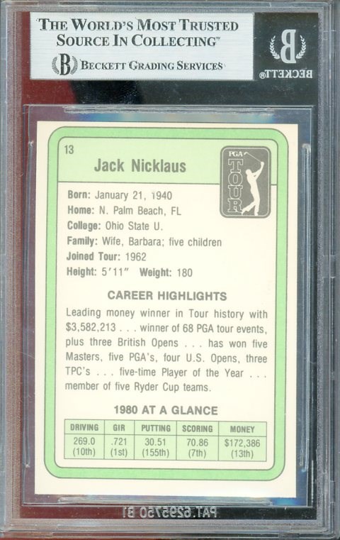 Lot # 848: 1981 Donruss Jack Nicklaus #13 BGS NM 7