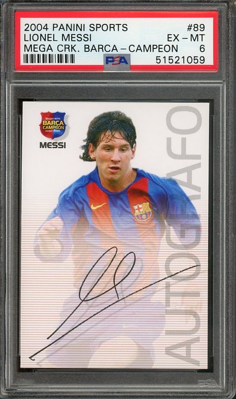2004 Panini Sports Mega Cracks Lionel Messi Barca-Campeon #89 PSA EX/MT 6 - A very tough card to find from early in Messi's career. Don't let this one get away!