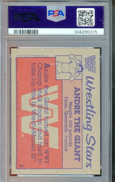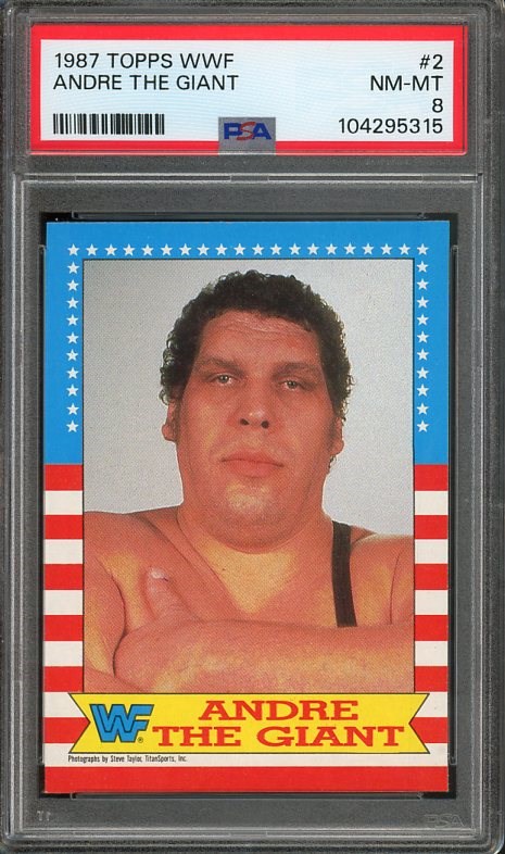 1987 Topps WWF Andre The Giant #2 PSA NM/MT 8 - One of the best liked wrestlers from the WWF, Andre's popularity carried over to the big screen having acting roles in Hollywood movies. Imagine that, a wrestler turned actor!