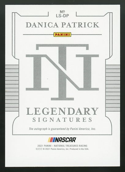 2021 Panini National Treasures Danica Patrick Legendary Signatures Green #'d/25 - A great looking card with color that really catches your eye. A great signature and NM/MT or better card.