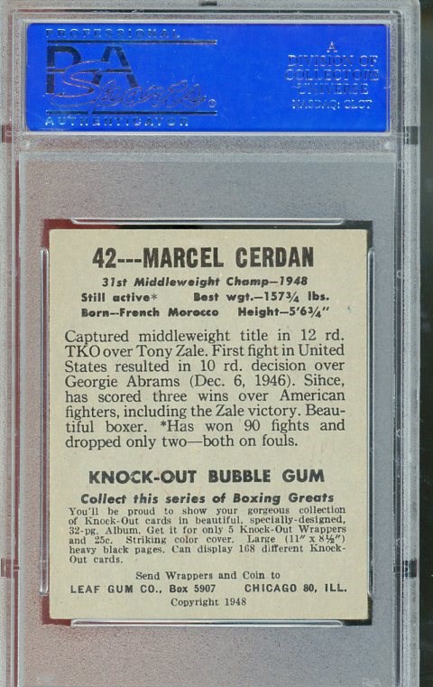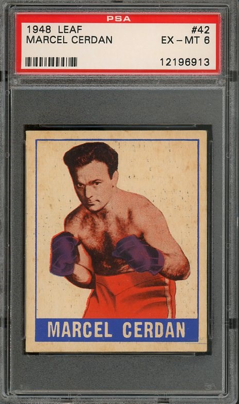 1948 Leaf Boxing Marcel Cerdan #42 PSA EX/MT 6 - Cerdan had an incredible 110-4 record. In his career he had winning streaks of 47, 23, and 37 fights in a row.