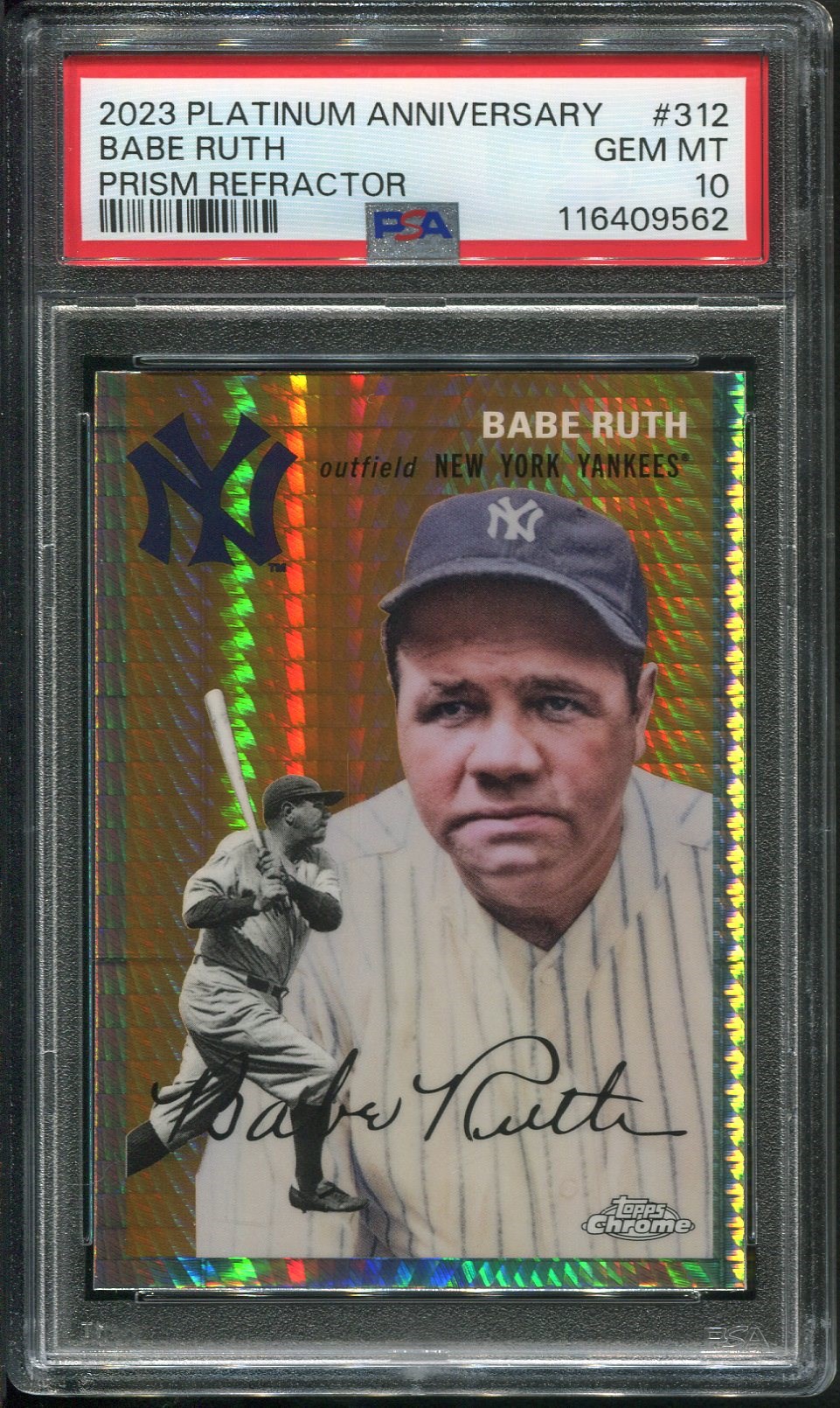 2023 Topps Platinum Anniversary Babe Ruth Prism Refractor #312 PSA Gem Mint 10 (Pop 5) - A really nice looking card of Ruth with only five PSA 10's in existence.