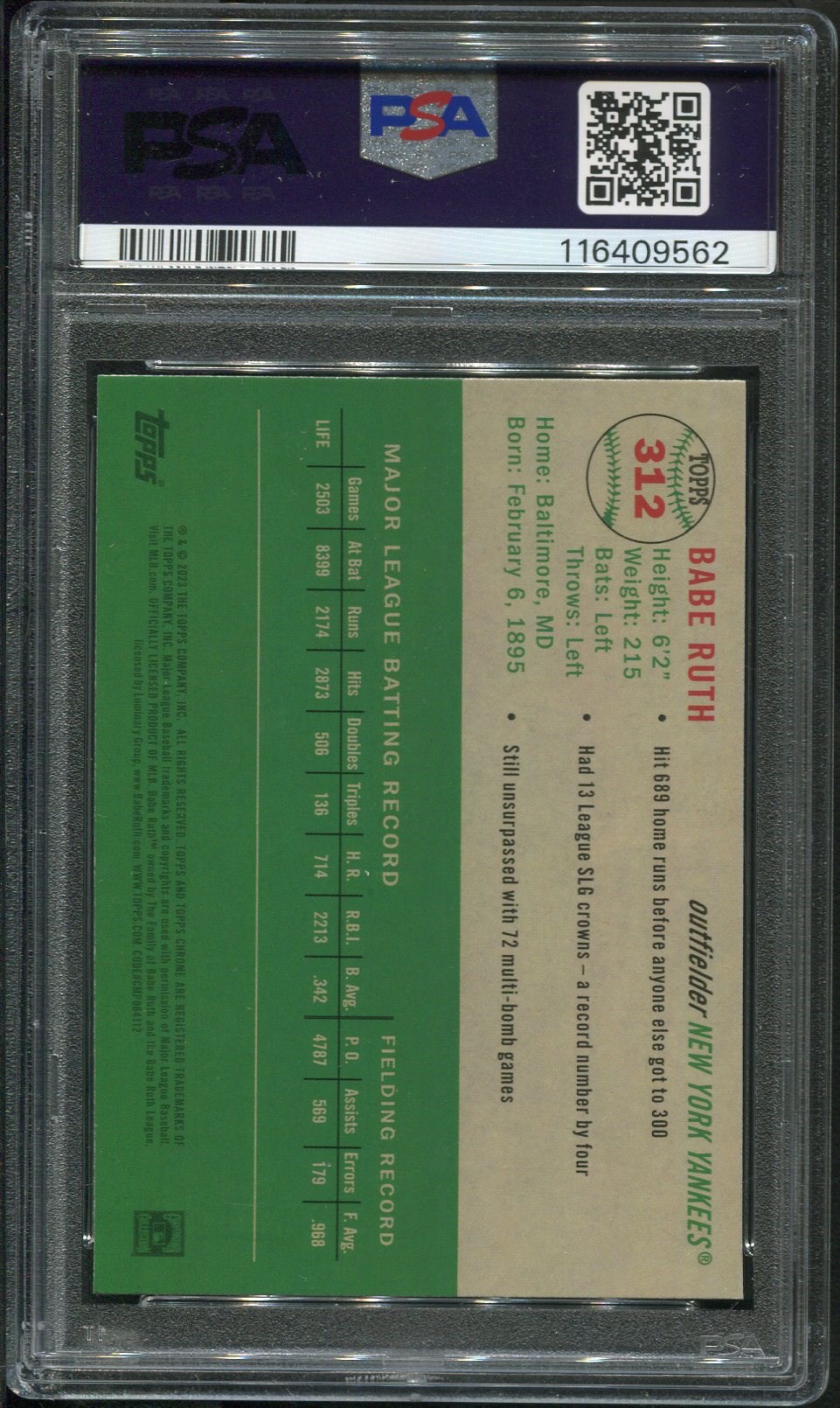 Lot # 583: 2023 Topps Platinum Anniversary Babe Ruth Prism Refractor #312 PSA Gem Mint 10 (Pop 5)