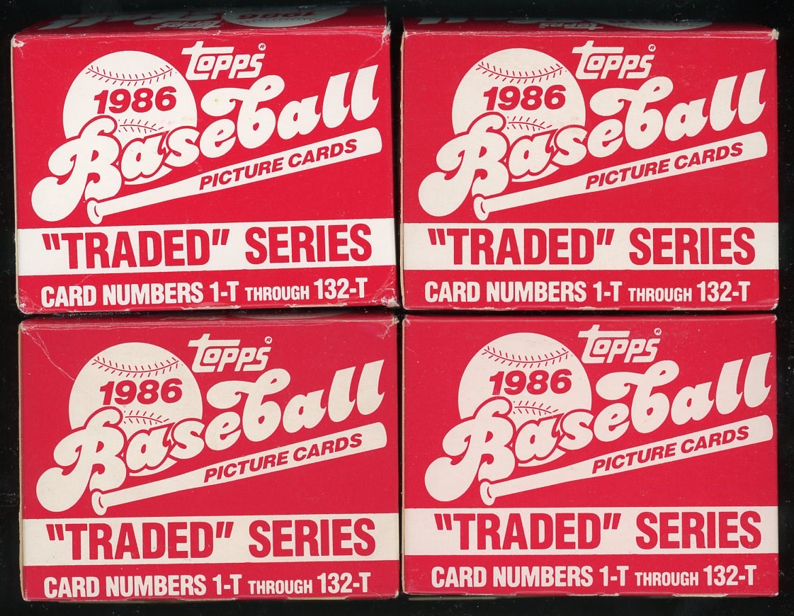 Lot of 4 1986 Topps Traded Baseball Sets - The 1986 Topps Traded set features several key cards including Barry Bonds, Bo Jackson, Jose Canseco, Will Clark, Jim Leyland, John Kruk, Wally Joiner, Bobby Bonilla and more.
