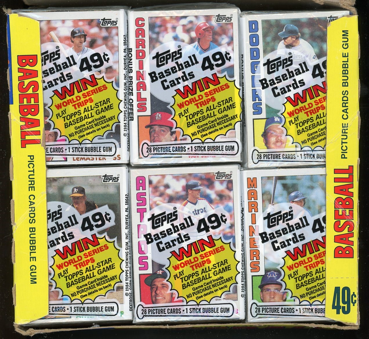 1984 Topps Baseball Unopened Cello Box (24 Packs) - Box and packs are in great shape. It is getting tougher to find older unopened boxes.