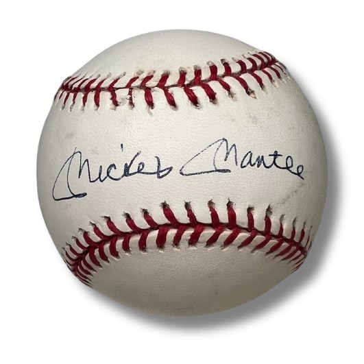 Mickey Mantle OAL Baseball  (No COA - Read) - This signed baseball was sent in to PSA/DNA for authentication and did not pass.  At $100 authentication fee, the consigner did not wish to try again, but would like to sell the baseball.  Thus, we are representing this as a replica Mickey Mantle baseball with no certificate.  Starting bid is $50 and it still displays nicely.