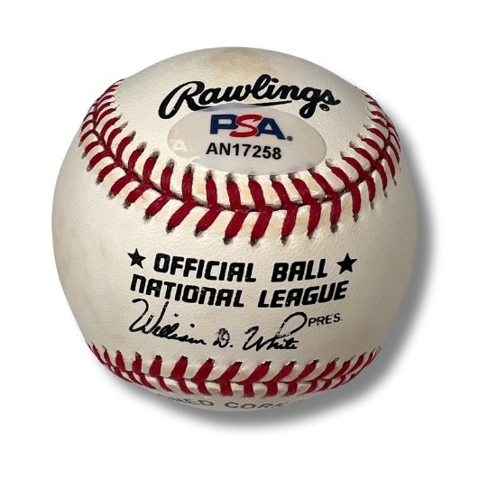 Ralph Kiner Autographed ONL Baseball with PSA/DNA Sticker Only - Signed on the sweet spot on this official National League William White, Pres. baseball.  The ball is NM and the signature is NM/MT+ and a great item to display in your collection.  PSA/DNA certified.