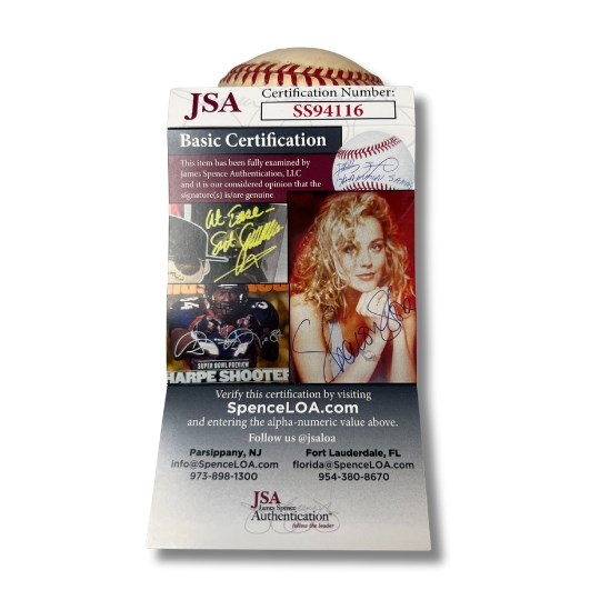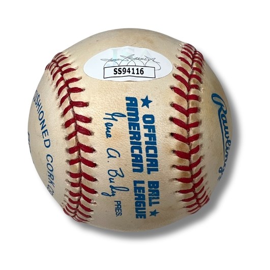 Bob Uecker Autographed OAL Baseball with JSA Certificate - Signed on the sweet spot on this official American League Gene Budig, Pres. baseball. The ball is EX/MT with some toning and the signature NM. Uecker autographs are hard to come by and very popular with collectors. A great item to display in your collection. Comes with a JSA certificate and matching sticker.