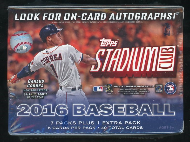 2016 Topps Stadium Club Baseball Unopened Blaster Box - 8 packs with five cards per pack. Randomly inserted autographs are possible. No additional shipping on this lot.