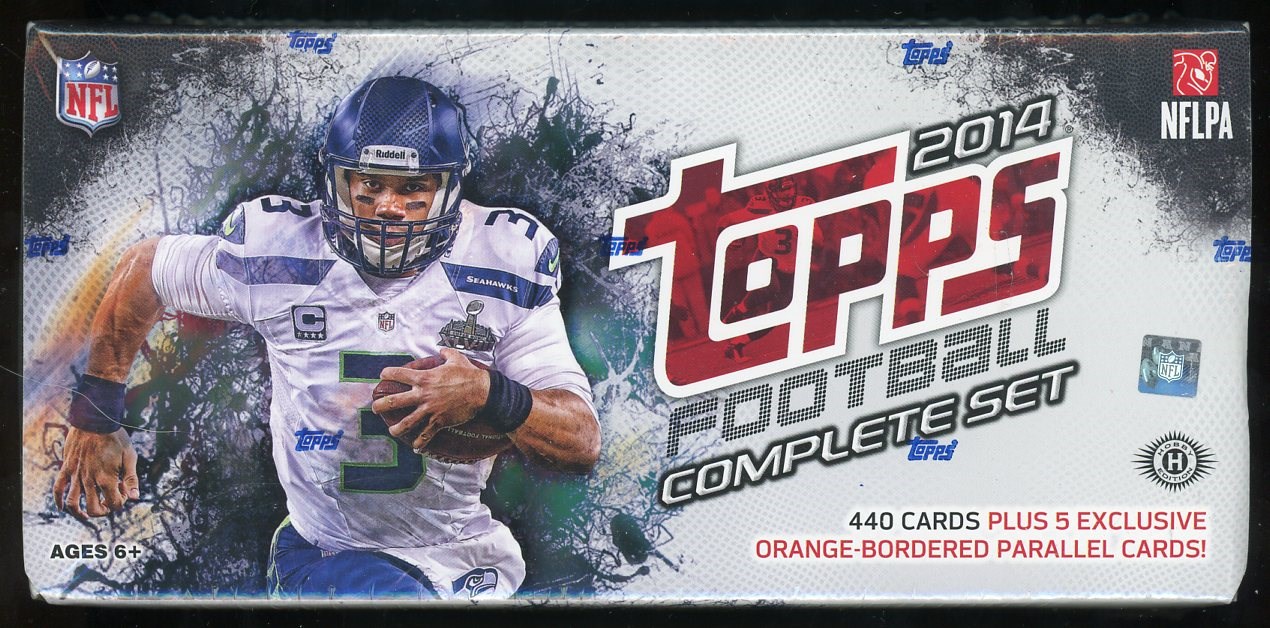 2014 Topps Football Factory Sealed Set - Still factory sealed and in great shape.  Set is 440 cards an includes several HOFers, plus rookies of Davonte Adams, Aaron Darnold, Odell Beckham, Garoppolo, Mike Evans, Khalil Mack and more.  Set also includes 5 Orange Bordered Parallels.