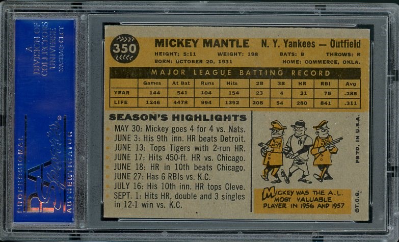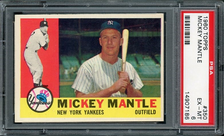 1960 Topps Mickey Mantle #350  PSA EX/MT 6 - Here is a really sharp 1960 Topps Mantle for your consideration.  Card has great corners, vibrant color and near perfect registration.  Card comes in a scratch free PSA holder.