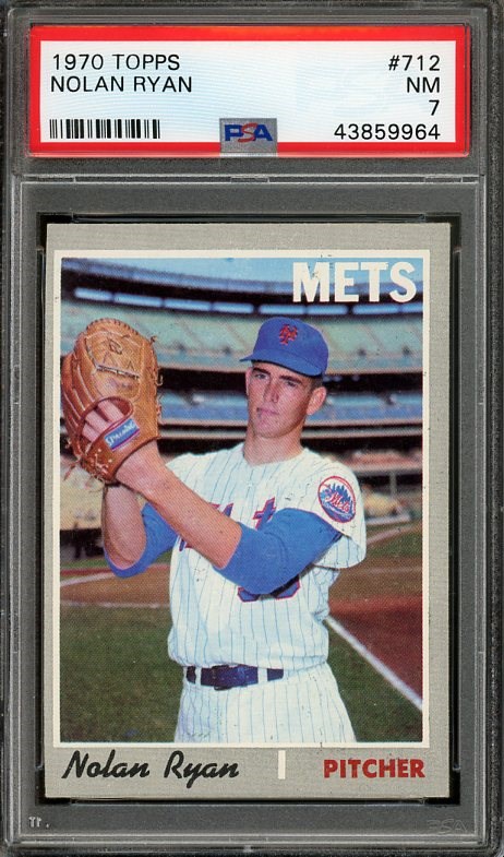 1970 Topps Nolan Ryan #712  PSA NM 7 - Here is one of the tougher Ryan cards to acquire, as it was issued in the lower print run, 7th series.  Card is clean with very little corner wear, while maintaining it's original color.