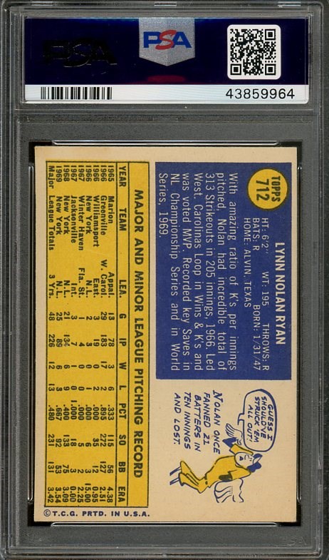 Lot # 22: 1970 Topps Nolan Ryan #712 PSA NM 7